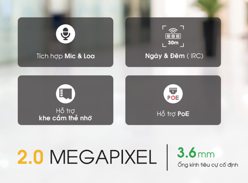 | VIDEO | Cảm biến hình ảnh | 1/2.8″ Progressive CMOS |